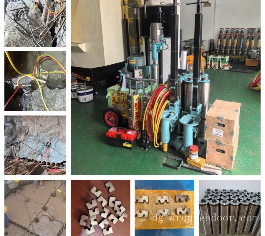1:组成:柱式*器和液压泵站2:适用工况:地下地基工程、*工程、电力管道及上下水道工程、采石一次分解等3:优点:1:完全无震动、无石头*现象,*环保2:易于*破碎方向和破碎量3:超高油*口油站,*时间控制在1分钟内4:与*的爆破施工相比,施工成本低4:施工效率:六条柱式*器可在中硬岩石上一分钟以内预裂6-10立方5:知识产权:两项专利